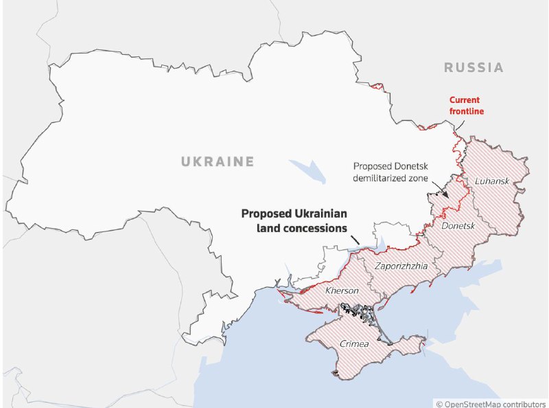 ↩️🖼 美国旨在结束俄乌战争的28点新计划引发担忧。 在领土问题上,该计划将承认克里米亚、卢甘斯克和顿涅茨克为俄罗斯领土;赫尔松和扎波罗热将在接触线冻结…