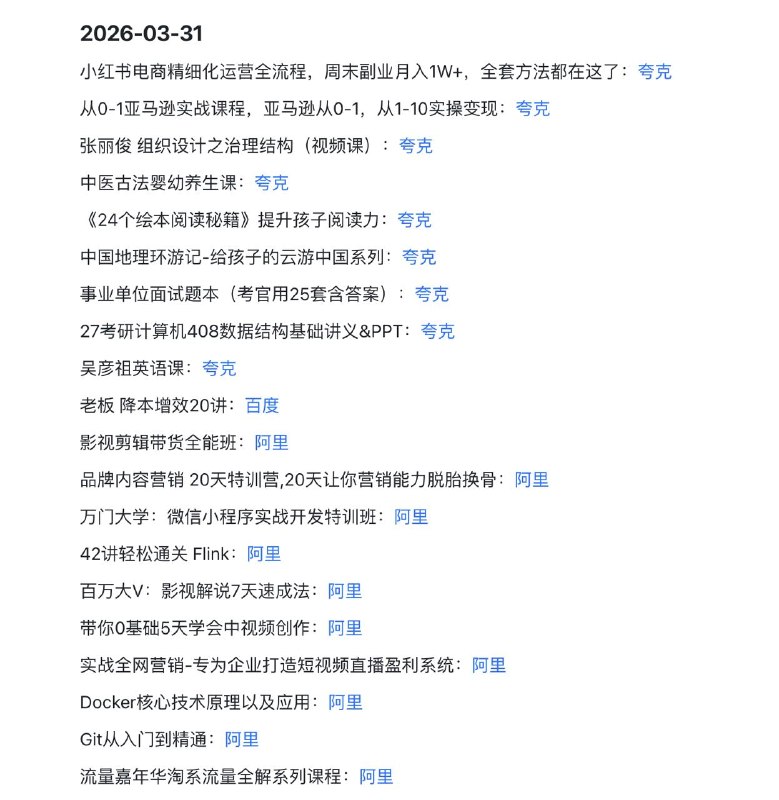 🖼 🗣️2026-03-31 实用教程 1️⃣ IT与底层架构: Docker原理解析、Hive 3.X调优、Flink、Git精讲 2️⃣ 全域搞钱电商: 亚马逊0-1实操、小红书/淘系/抖音…