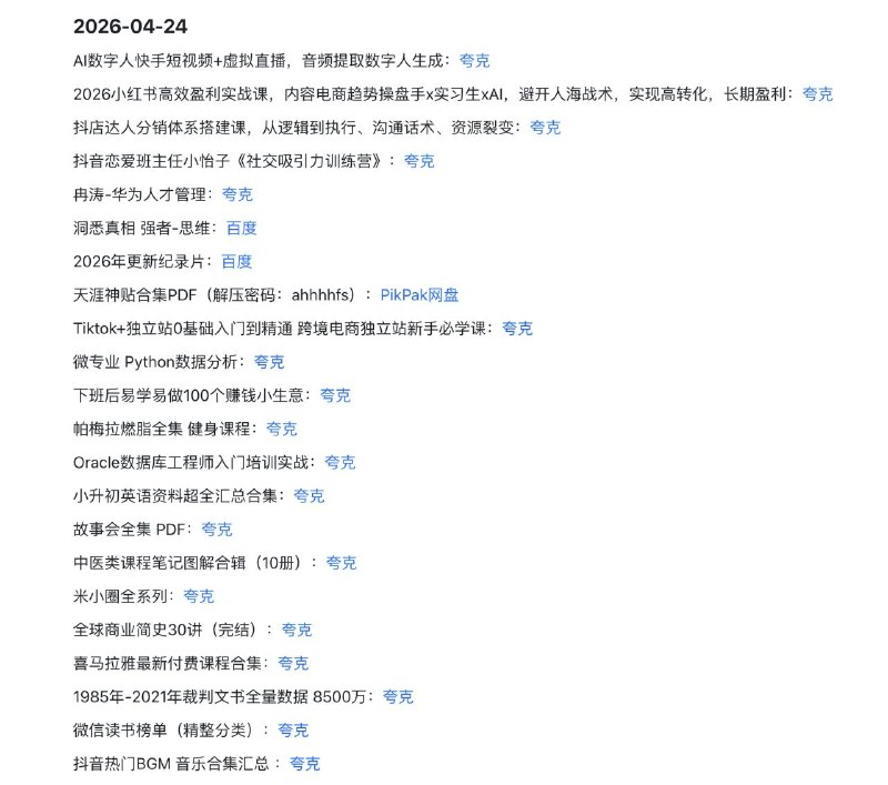 🖼 🗣️2026-04-24 实用教程 1️⃣ IT大厂与AI变现: Oracle数据库实战、Python数据分析、AI数字人直播、AI+小红书电商盈利 2️⃣ 跨境电商与搞钱: TikTok+…